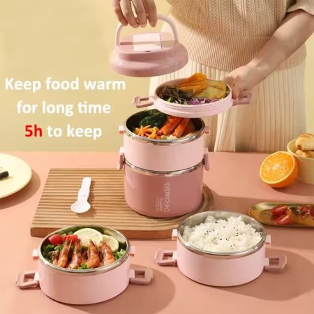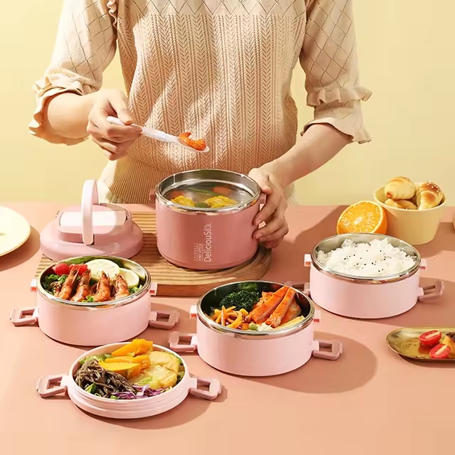 Round Preservation Stainless Steel Lunch Box Multilayer Bento Box Keep Food Warm Food Storage
