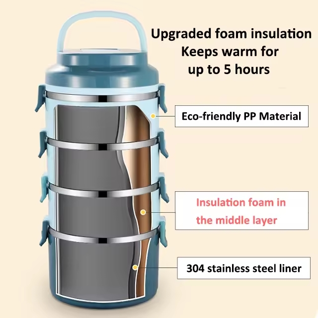 3/4 Tiers Round Preservation Stainless Steel Lunch Box Multilayer