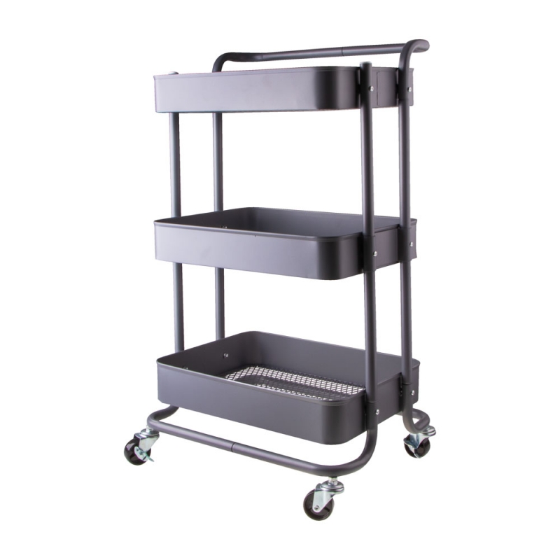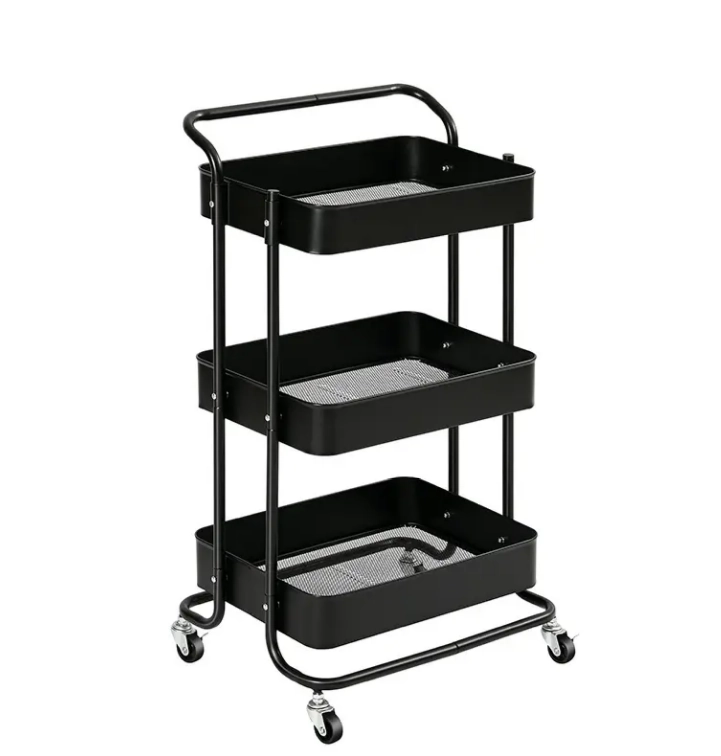 3 Tier Black MOBILE METAL Storage Trolley Cart