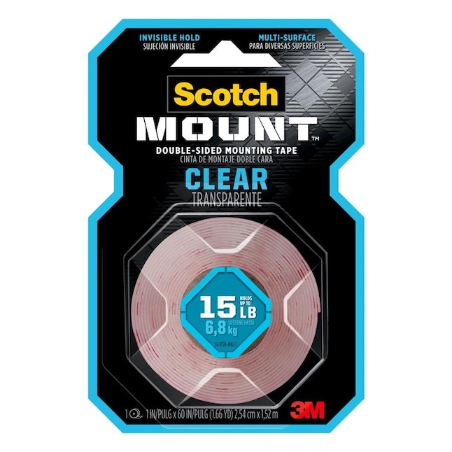Scotch® Clear Mounting Tape is a clear, double sided conformable tape. Can be used on a variety of indoor surfaces that are clean, dry and smooth. Faster, safer more versatile than screws and nails.