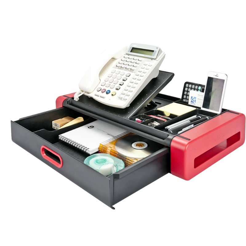 - Adjustable phone platform and multi compartments stationery storage