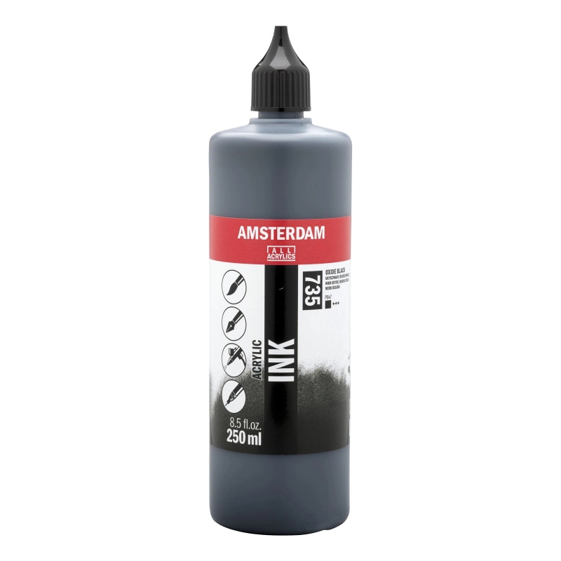 Amsterdam acrylic ink combines the best properties of ink with the benefits of acrylic paint – the ultra-fluid, vibrant colors don’t fade and dry quickly with a permanent finish.