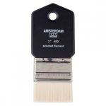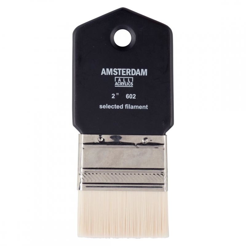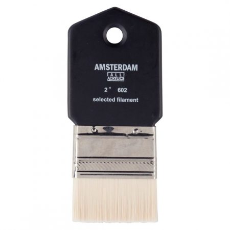 The Amsterdam 602 Series Paddle Brushes features high-quality synthetic hairs which will retain their shape and that work exceptionally well with both pasty and thinner acrylics. The broad 2-inch line of short hairs in a relatively thin bundle in combination with the flat handle provides ultimate control. They are perfect for covering large surfaces and varnishing, but also gives you the ability to work expressive and do calligraphy. The hairs are mounted on the ergonomic handle with a strong nickel-plated brass ferrule.