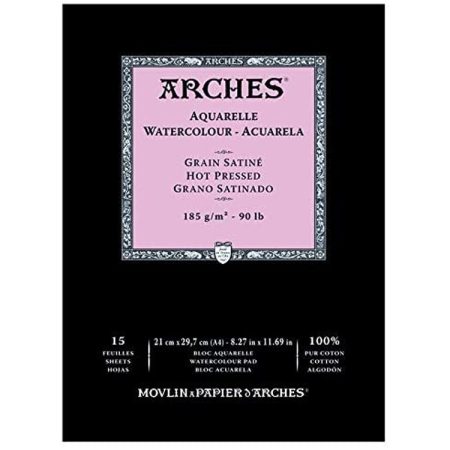 Arches Aquarelle Watercolour – Acuarela- Grain Fin- Hot Pressed 185 g/m 15 Sheets