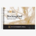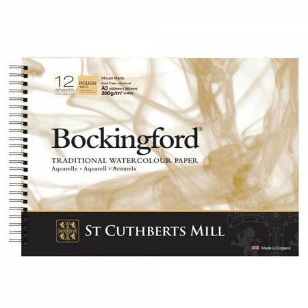 Bockingford products are presented in three forms: blocks (glued on four sides), pads (glued on one side on the longer side), spiral (on the short side). The papers are smooth (Hot Pressed – HP), medium texture – texture (Cold Pressed/ – CP [NOT]) and rough texture (Rough – RG).