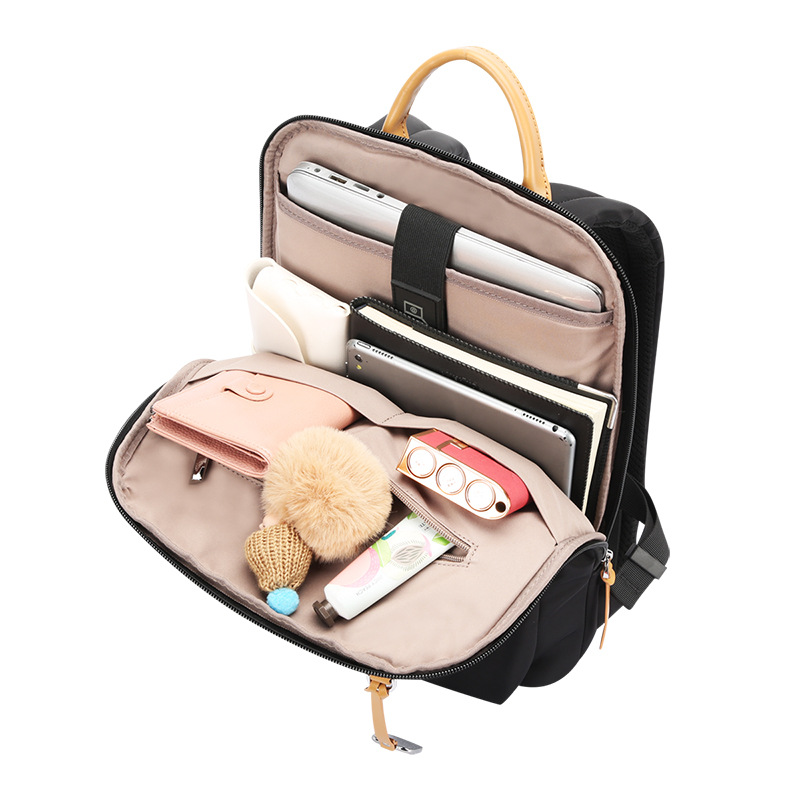 Bopai 62-126821/62-126825 is a high-end backpack from the Bopai brand with top quality today. The backpack comes in two colors, black and pink, suitable for office and school. Designed on a nylon fabric background, it has good water resistance, a convenient compartment that can hold a 14-inch laptop and daily personal items.