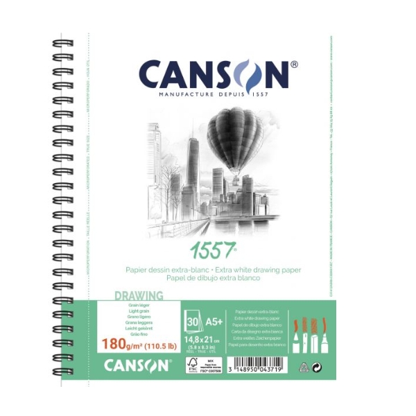 Canson® 1557 Extra White Sketch Pad 180g/m² 30 Sheets.