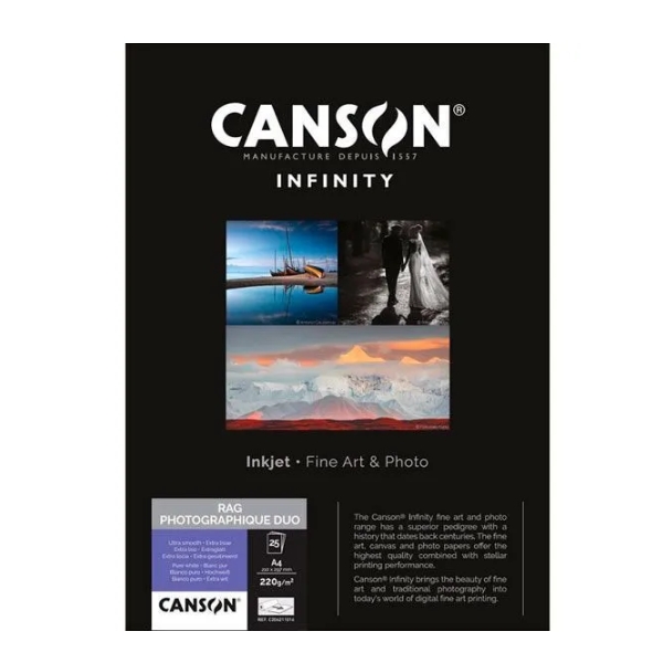 CANSON® A4 Fine Art & Photo Paper INFINITY Rag Photographique Duo 220gsm 25Sheets.