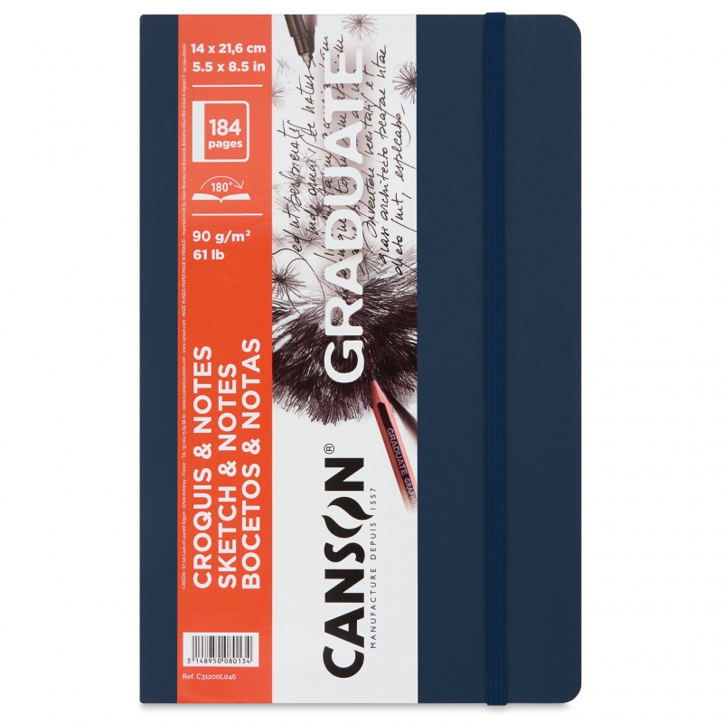 With Canson Graduate Sketch and Note Softcover Books, you can easily sketch and take notes anywhere you go! The convenient 5-1/2″ x 8-1/2″ (14 cm x 21.6 cm) size of these soft-spined, softcover notebooks allows them to fit comfortably into travel bags and backpacks, and the elastic band closure ensures they stay closed while in transit.