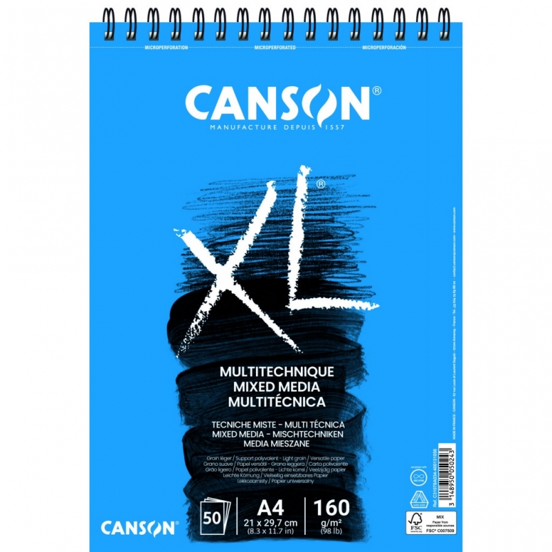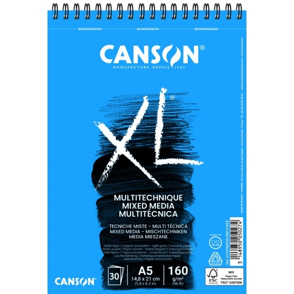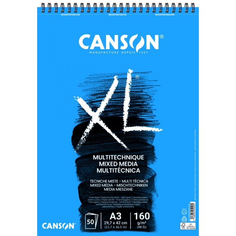 Canson® XL® Mixed Media is also available as a book. With its large spiral binding and hard cover, it is the ideal companion to enhance one’s creativity when travelling