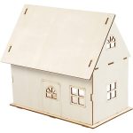 Self-assemble houses of bright wood with contours around windows and door. One side of the house is without a wall and roof, so that the house can easily be used as a dollhouse
