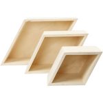 Wooden boxes in diamond shape, 3-piece set Height approx. 11, 14, 20 cm Depth approx. 10 cm Ideal for your own design with decoupage paper, acrylic paint, shabby paint or to leave in natural wood. Very nice as a box for storage, but also for wall decoration, for gifts, etc.