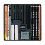 The new 25-piece black and white drawing set contains white pastel and charcoal products for sketching and drawing.