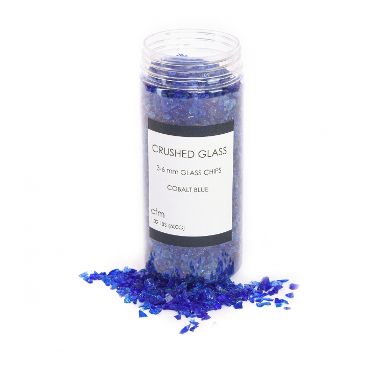 CRUSHED GLASS CHIPS 600G COBALT BLUE 3-6MM