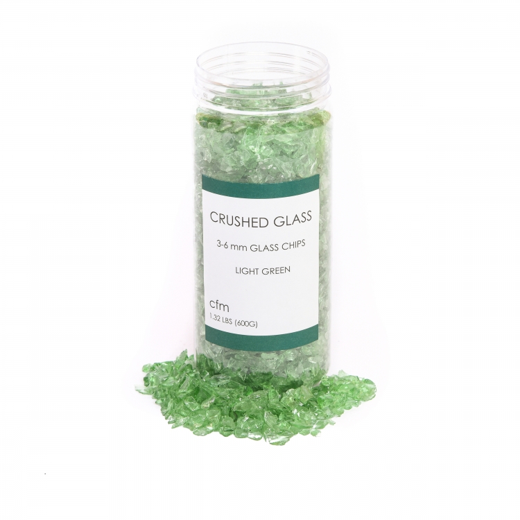 CRUSHED GLASS CHIPS 600G LIGHT GREEN 3-6MM
