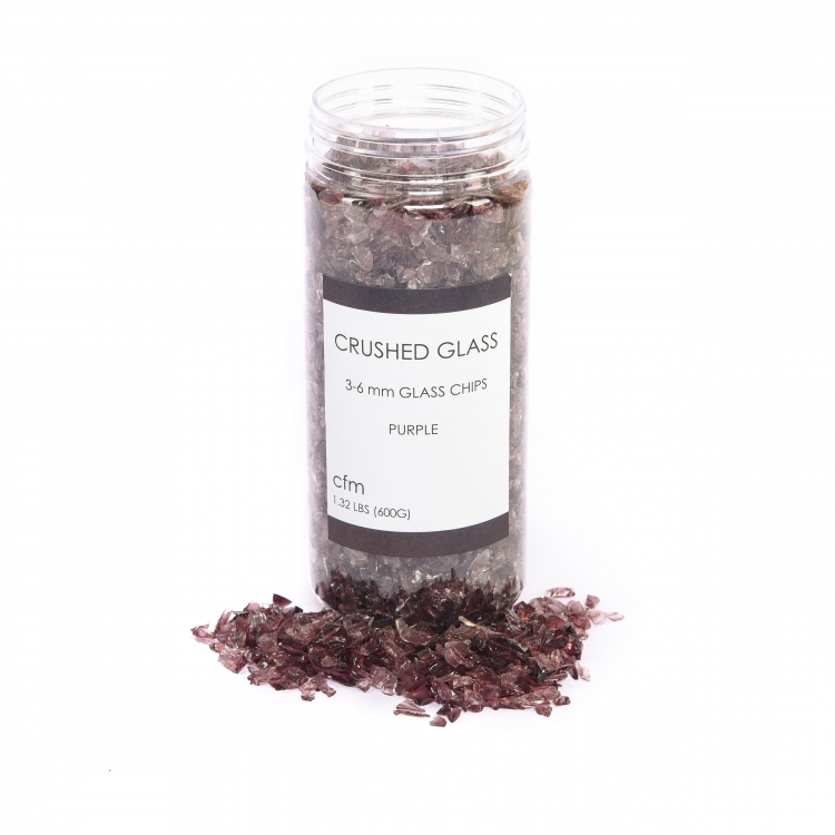 CRUSHED GLASS CHIPS 600G PURPLE 3-6MM