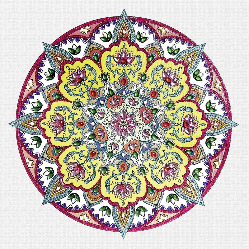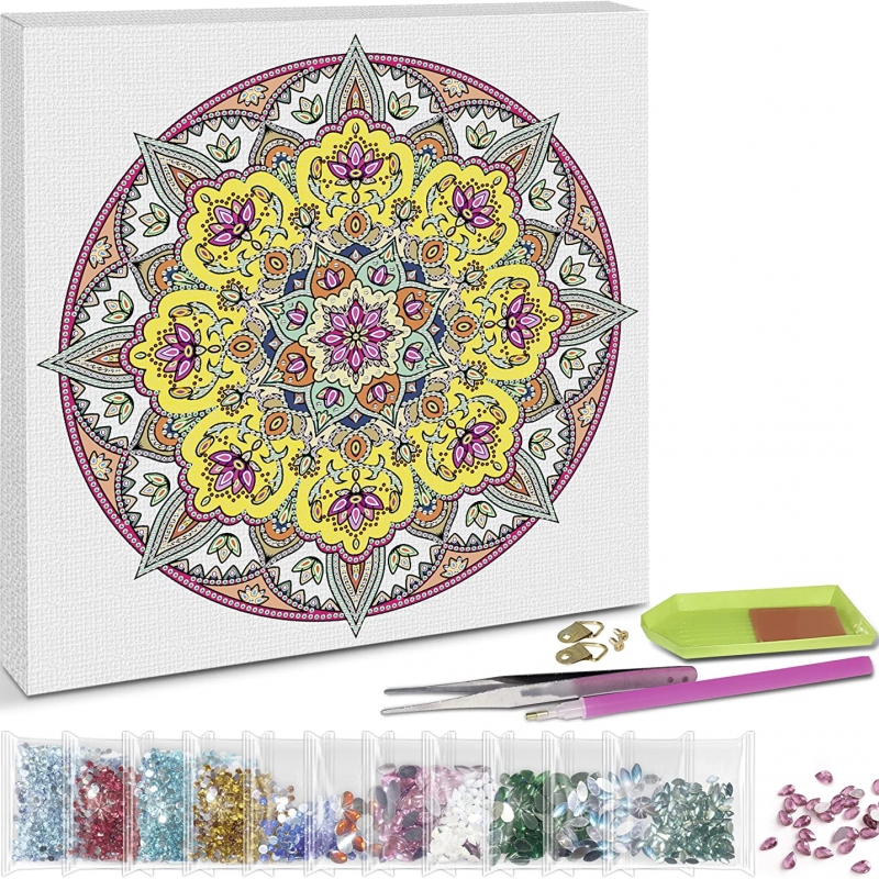 Diamond Painting Mandala Craft Set 3 with Gemstones in Yellow, White and Red Diamond Painting Mandala Craft Set 3 with Gemstones in Yellow, White and Red