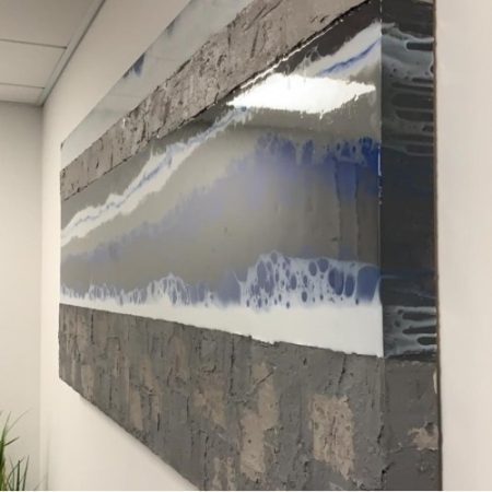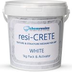 resi-CRETE offers the look and texture of traditional concrete but without the weight or brittleness of existing cementitous mortars. This material offers what liquid resins are unable to: depth, height, structure and control on sloped or vertical surfaces. It gives the user a quick, safe and easy method of creating depth, and thickness to control 3D height for art projects. resi-CRETE can be applied to most surfaces (canvas, wood, MDF, glass, steel, metals, stone, ceramic etc).