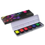 Contents: 12 pans (Amethyst – Sapphire Blue – Caribbean Green – Blue Silver – Deep Black – Mystic Colour – Pearl Silver – Pearl Gold – Crystal Gold – Orange Copper – Red – Purple).