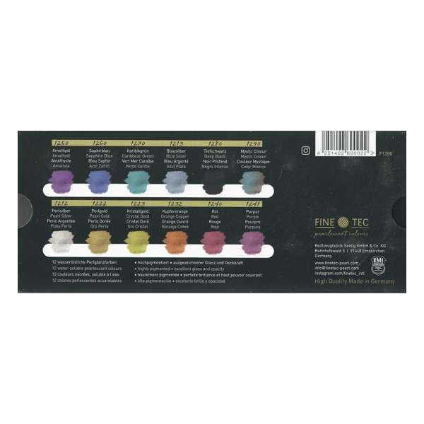 FINETEC® Pearlescent watercolour set Rainbow | 12 colours FINETEC® Pearlescent watercolour set Rainbow | 12 colours