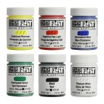 Bold colors inspired by mid-century pop art and probably the best starting point and value for flat, matte painting. Set contains six 2 oz jars.