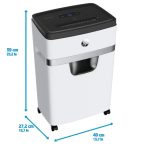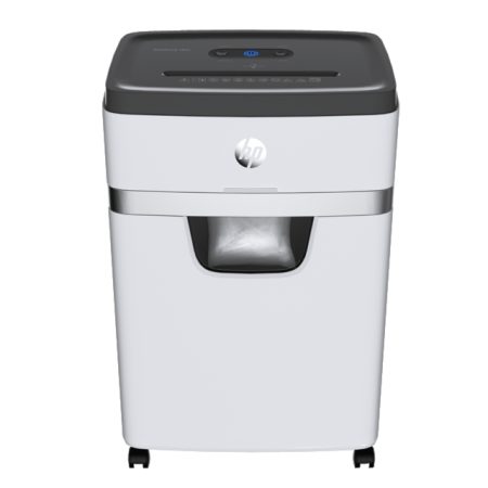 The HP OneShred 18CC is a reliable paper shredder with a cutting capacity of 18 A4 sheets at a time and is a quintessential feature of any open-plan office. This modern document shredder on castors features the high security level P-4 and shreds your sensitive data in particle cut into 4 mm x 35 mm clippings. Proper shredding of payroll or tax documents, which are considered personal documents, is thus guaranteed in accordance with data protection regulations. If the HP OneShred 18CC is not used for more than 30 minutes, it automatically switches to sleep mode and power consumption is reduced to less than 0.5 watts. The powerful office shredder requires a comparatively short cooling time of 20 minutes after continuous use.