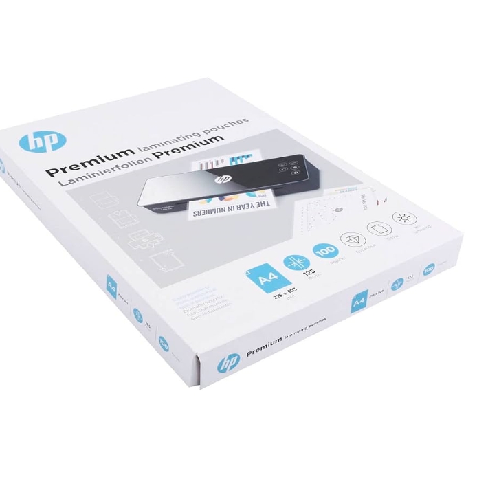 With the HP Premium laminating pouches give your important documents a high-quality feel and a radiant shine. Measuring 216mm x 303mm, these transparent laminating pouches with a glossy finish are suitable for your A4 sized documents. These films are suitable for hot lamination only and can be used with all hot laminators, provided the micron count specified by the manufacturer is not exceeded. This type of film is available in a box with a quantity of 100 pieces.