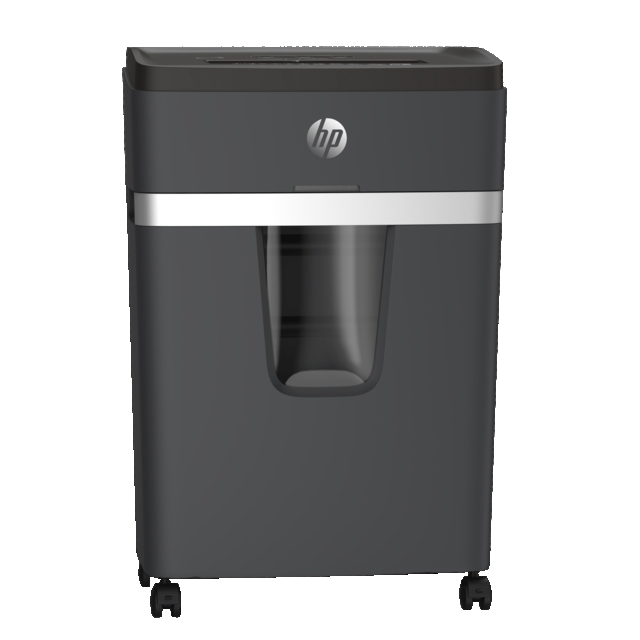 In cross cut, the HP Pro Shredder 18CC reliably destroys your sensitive company data with a cutting capacity of 18 A4 sheets. Awarded the high security level P-4, the high-quality document shredder shreds your personal documents such as payslips or employment contracts into 4 mm x 35 mm clippings in compliance with the DSGVO. This elegant companion should be a quintessential feature in any open-plan office and is conveniently mobile use thanks to its four castors. Compared to its little brother from the HP One shred series, the HP Pro Shredder 18CC impresses with a exceptionally quiet operating noise of only 55 decibels and a longer operating time of 30 minutes