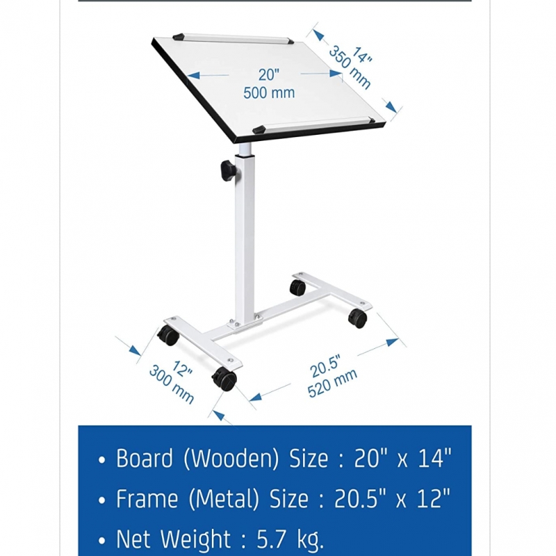 Laptop Table with wheels Best For – Work From Home, Study, Viewing Movies. Ideal For Best Eye Focus & Body Angle with Comfort. Comes with Lockable Wheels. Easy to Adjust Height & Angle. Can Be Used As Study Table For Students.