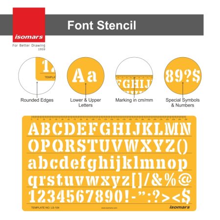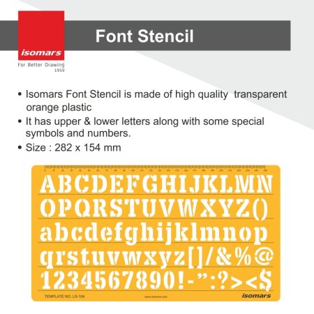 - Isomars Lettering Stencil – 104 includes both uppercase alphabets and numbers.
