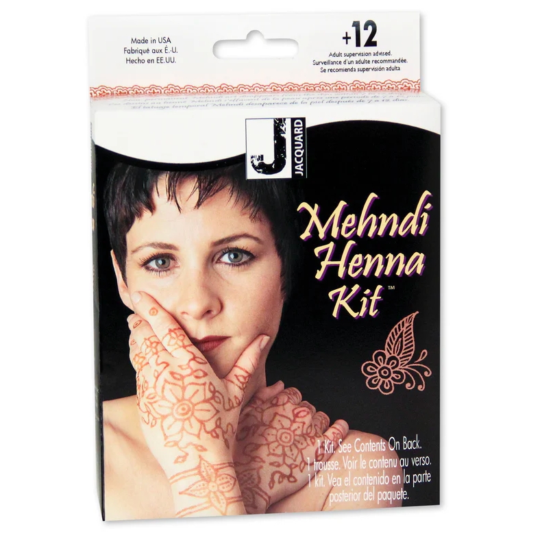 The exotic non-permanent body art of the Far East from Jacquard Products! Traditional Mehndi is drawn on the hands and feet, but you can apply it anywhere. Feel free to create your designs on your arms (perhaps as armbands), on legs, around the belly button, behind the neck or anywhere you want.