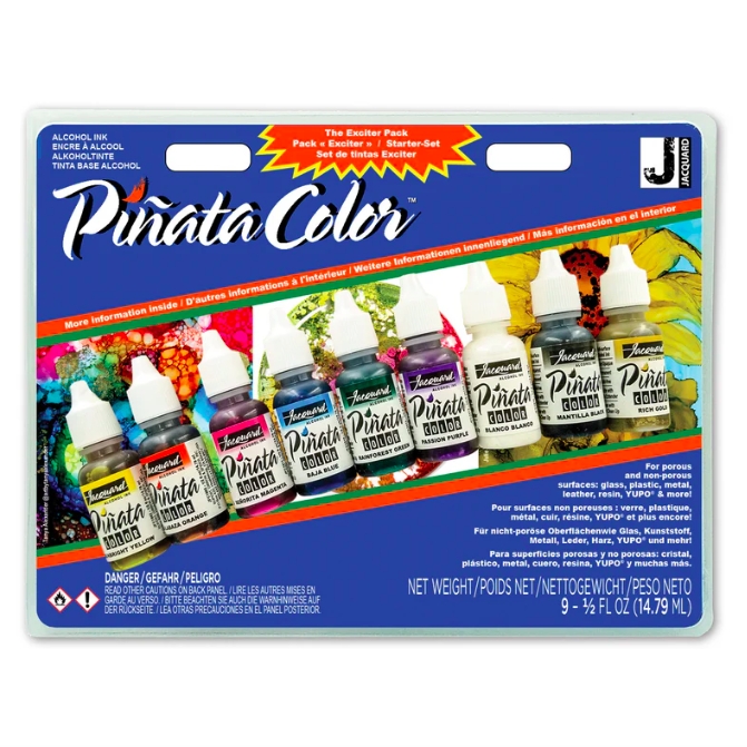 Highly versatile, transparent, alcohol-based Piñata Inksare great for: glass, leather, wood, paper, YUPO®, plastic, metal, metal foil, resin, wax and vinyl.