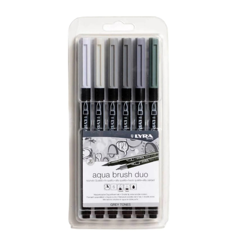 LYRA Aqua Brush Duo Pack of 6 – Grey Tones