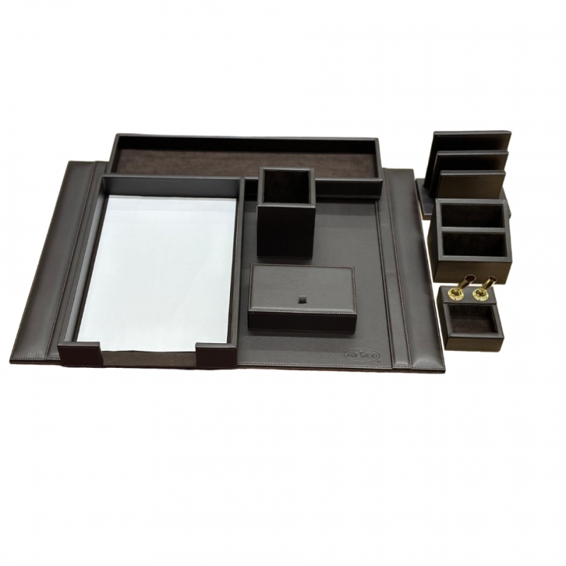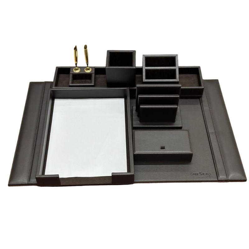 MESCO PU LEATHER DESK SET 8-Pieces BLACK/BROWN