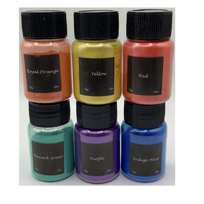 Mica powder are very fine particle color pigments that can be mixed into almost any transparent medium and applied to any surface. It is perfect for coloring acrylic, paint, epoxy resin, soap, slime, etc.
