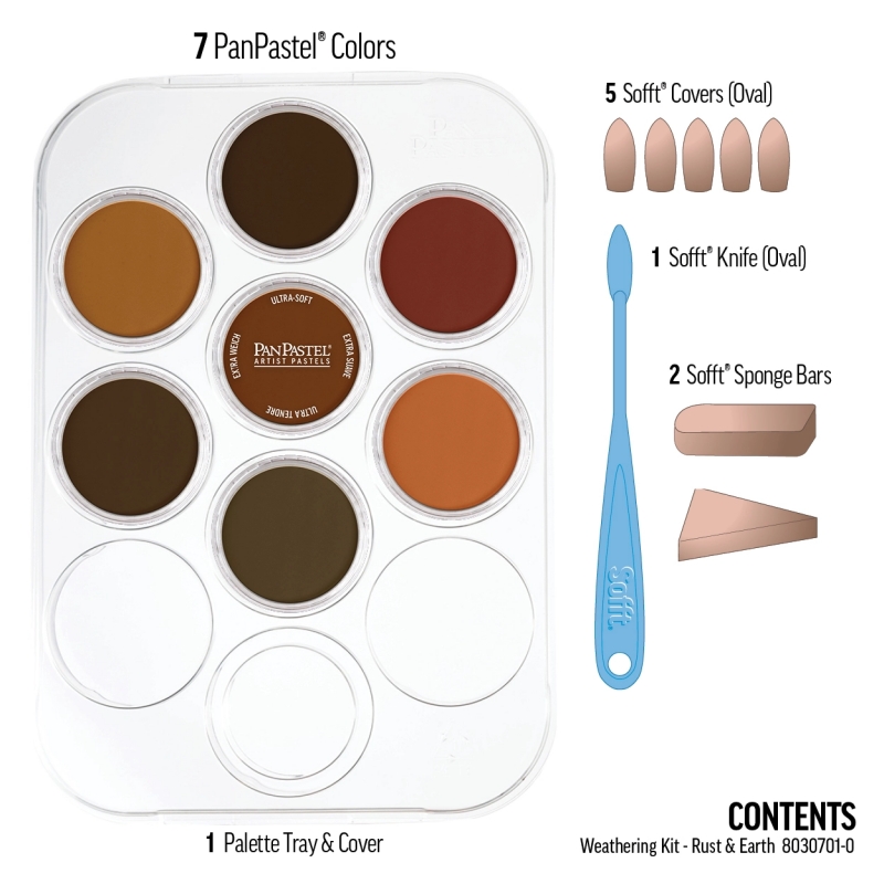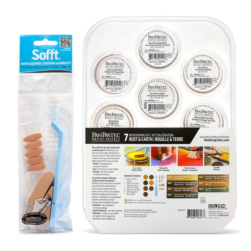 This 7-color kit is a quick and easy way to add color and weathering effects to models. Great for light & dark rust effects, earth, dust, mud & sand colors. All colors can be mixed to create intermediate colors. For tips, techniques and inspiration on how to create weathering effects for models