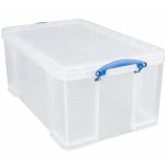 This Really Useful Box is a transparent, solid plastic box for multi-purpose storage. The 64 litre box comes with a lid and clip lock handles to keep its contents secure.