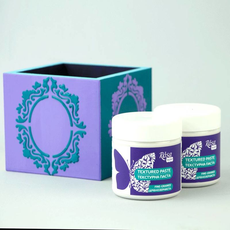 The fine-grained relief paste from the Talent series by Rosa is designed to create smooth reliefs and subtle three-dimensional effects. Thanks to the thick creamy consistency, the paste is perfectly modeled and can be applied to various types of hard surfaces: wood , cardboard , glass ceramics, plastic, metal, primed canvas or stone. It is also suitable for use with stencils . It is applied evenly and clearly using a brush , sponge or spatula . It retains the created shape and does not shrink.