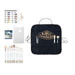 - Includes 12 Golden Taklon brushes (shader 4, 8, 10, 12; wash 3/4-inch; round 1, 3, 5, 8; liner 5/0, 1; fan 4), 1 palette knife, 1 wooden stylus, 12 acrylic paint tubes (12ml), 1 apron, 1 plastic palette, 1 graphite pencil