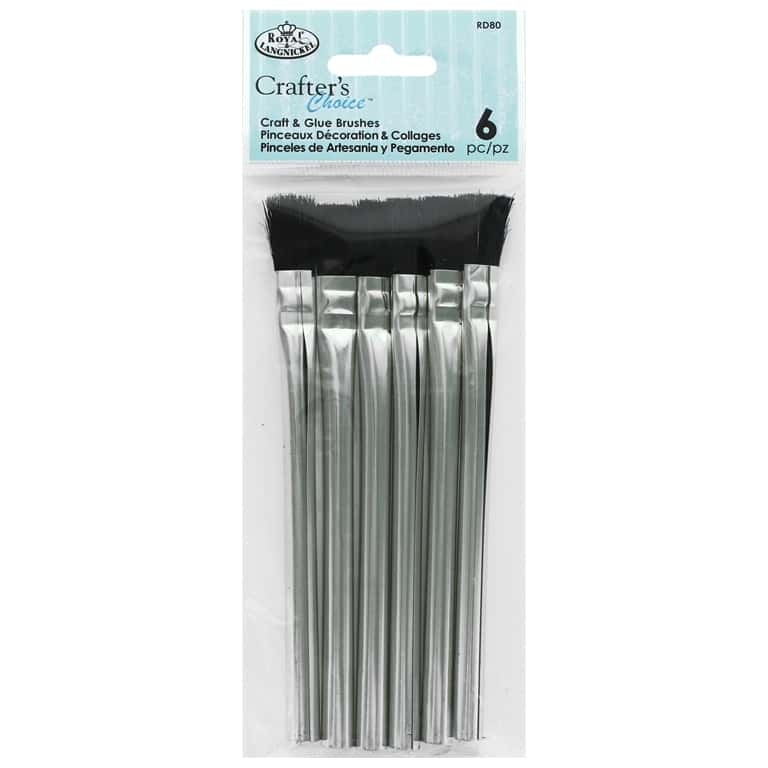 ROYAL & LANGNICKEL Craft & Glue 6 pc- Craft & glue brushes can be used with most types of paints, acids, and glues, and are great for most craft projects. They clean up easily with soap and water and then just let air dry or simply throw them out. They have sturdy, soft bristles and metal handles.