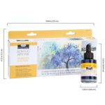 A range of extremely fluid, richly pigmented acrylic art ink in six 30ml (1 US fl. oz.) bottles with droppers. This set contains primary colors.