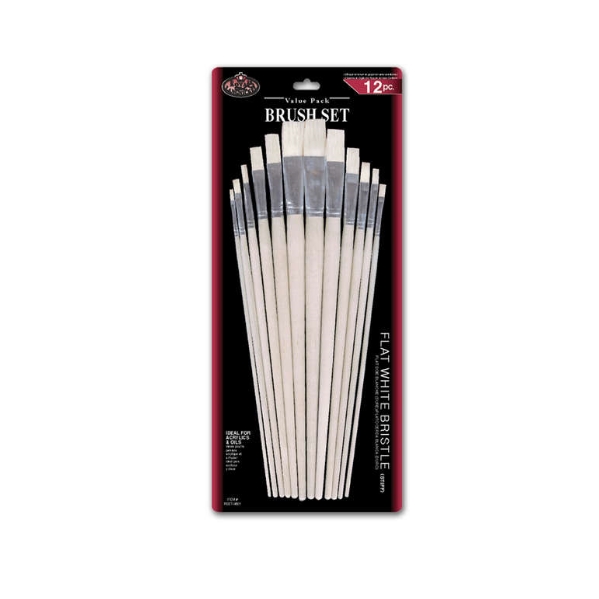 ROYAL & LANGNICKEL FLAT WHITE BRISTLE BRUSH SET/12PCS