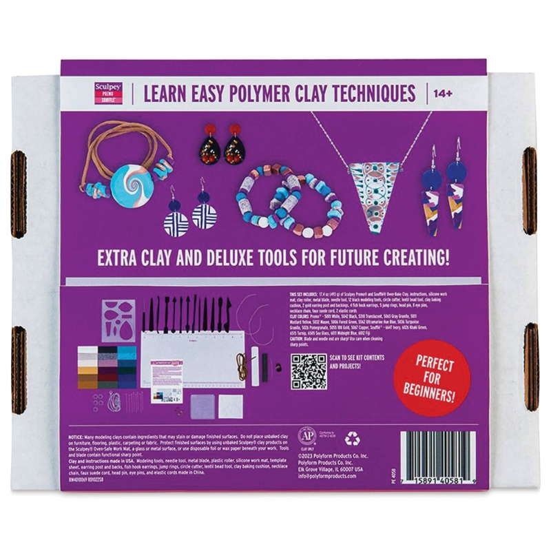 The wide range of beginning jeweler’s tools included in the kit are made from durable materials, so you can use them again and again. Clay remains flexible and soft until baked, making it easy to store until the next time inspiration strikes.