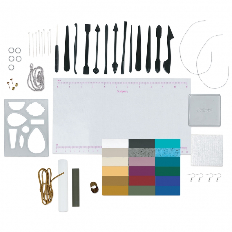 Jump right into the exciting world of DIY clay jewelry with this 65-piece Sculpey Ultimate DIY Jewelry Kit. The perfect introduction to a wide range of essential techniques, this comprehensive kit includes over 20 blocks of Sculpey Premo and Soufflé clays, plus clasps, a range of reusable tools, and easy-to-follow instructions.