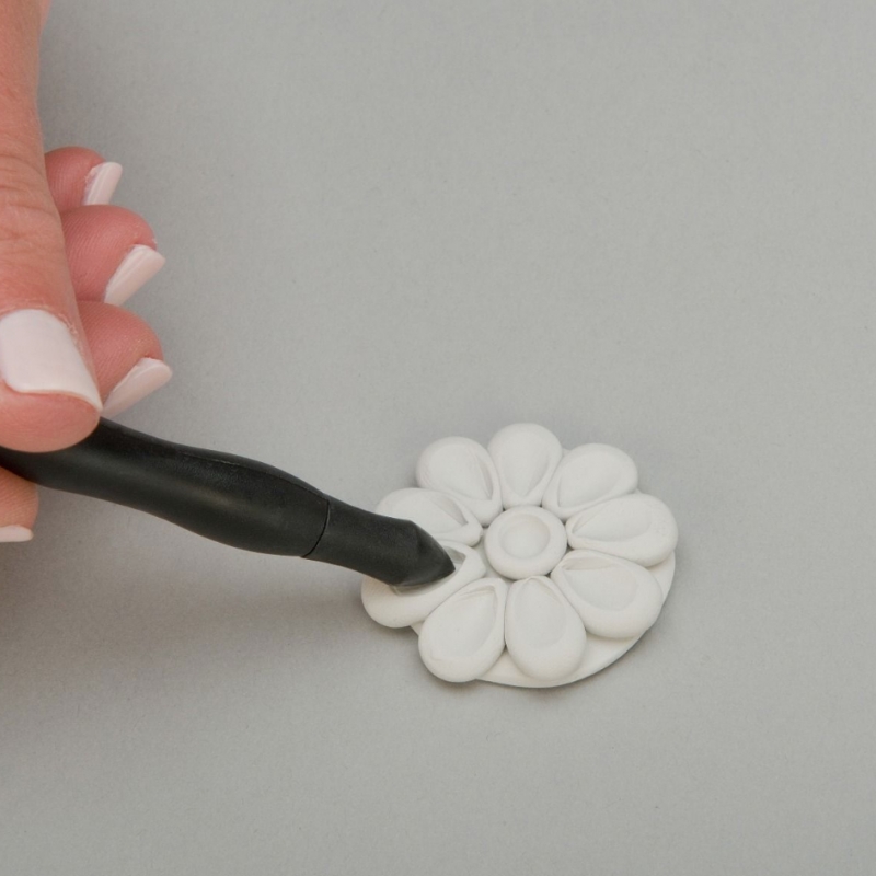 - Blade to create lines, fine details and cut clay.