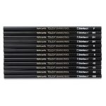 This set contains 12 pencils, including one each of 4H, 3H, 2H, H, F, HB, B, 2B, 4B, 6B, 8B, and 10B pencils in a metal gift tin. Tin measures 7-1/4″H x 4″W x 1/2″D.