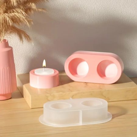 2 Holes Candlestick Silicone Mold DIY Handmade Round Plaster Epoxy Resin Candle Holder Molds Home Decoration