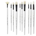 The brush heads are resin-bonded and crimped to kiln-dried, lacquer-dipped birch handles using seamless brass and aluminum ferrules to ensure a long-lasting, permanent fit.