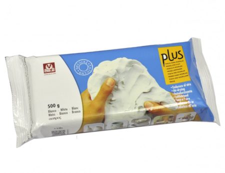 PLUS clay has a soft, pleasant and fine texture to the touch. Its clay composition gives it excellent plasticity for detailed modelling. Can also be thrown on a potter’s wheel. Odorless and not staining. The rest of the clay can be easily removed from any surface with a damp cloth. The presence of natural cellulose fibers allows safe drying without cracks or fissures, even in large pieces. Once dry, the clay can be painted or varnished with any type of paint or varnish. It can be also polished, carved or drilled.