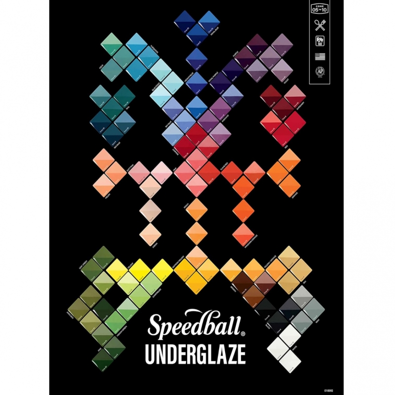 Speedball Underglazes are ideal for a detailed painting, sgraffito decoration, watercolor effects, free brush painting, and mishima decoration. These opaque underglazes will not move or bleed. Originally designed to perform in a wide firing range, Cone 06-6, these underglazes can be successfully fired at Cone 10. All colors are dinnerware safe when used and fired as directed. For best results, apply 2-3 liberal coats. All colors are lead-free.